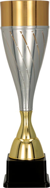 ABVERKAUF: Serie 8104, 3 Grössen, bronze-silber-goldfarben, Metallcup, Kunststoff, Kunststoffsockel schwarz, incl. Gravurschild mit Gravur ( Text und Ziffern )