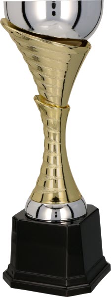 ABVERKAUF: Serie 8029, 2 Grössen, silber-goldfarben, Metallcup, Kunststoff, Kunststoffsockel schwarz, incl. Gravurschild mit Gravur ( Text und Ziffern )