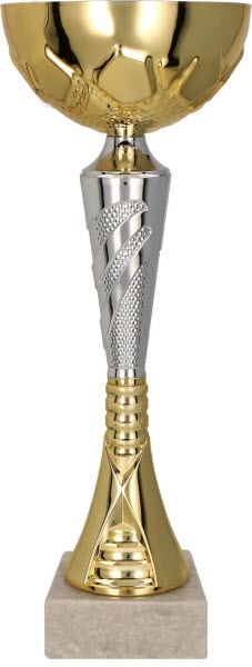 ABVERKAUF: Serie 8113, 3 Grössen, gold-silberfarben, Metallcup, Kunststoff, Marmorsockel hell, incl. Gravurschild mit Gravur ( Text und Ziffern )