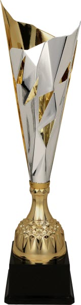Serie 8045, 3 Grössen, gold-silberfarben, Metallcup, Kunststoff, Kunststoffsockel schwarz, incl. Gravurschild mit Gravur ( Text und Ziffern ).